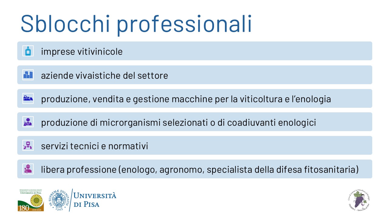 Le attività didattiche includono lezioni, laboratori, esperienze in campo, visite tecniche e tirocinio, per acquisire competenze concrete e spendibili nel mondo del lavoro. Il corso è rivolto a chi desidera trasformare l’interesse per il settore vitivinicolo in una professione dinamica e qualificata, in ambito aziendale, consortile o istituzionale.